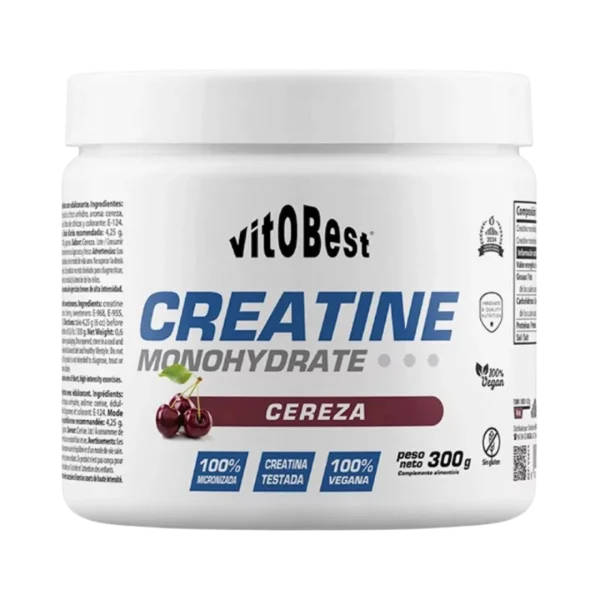 Vitobest® creatina monohidrato Cereza, Fresa y Piña-Platano 300 g, utilizada en la elaboración de nuestra fórmula, es una de las de mayor calidad en el mercado: 100% micronizada. En su fabricación Vitobest® se rige por una cuidadosa selección de materias primas y escrupulosos métodos analíticos.