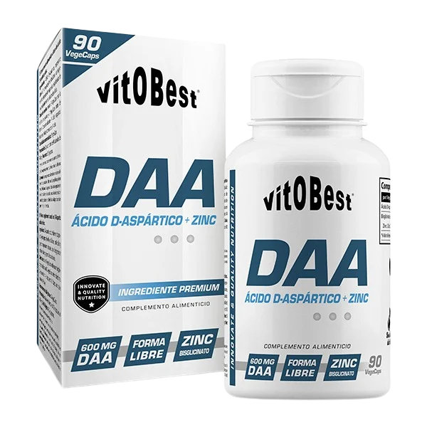 El ácido D-Aspártico (DAA), el ingrediente principal de DAA, de Vitobest®, es un aminoácido que ayuda a estimular la producción hormonal en la glándula pituitaria, el hipotálamo y los testículos: resulta esencial en la producción de compuestos relacionados con la libido y el crecimiento de tejidos, con especial relevancia en la producción de testosterona1. Esta hormona, de creciente popularidad entre los deportistas, estimula la síntesis de proteínas mediante el envío de señales al músculo para que este se regenere y crezca.