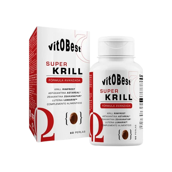 La novedosa y concentrada fórmula de Super Krill, de Vitobest®, contiene aceite de krill: 5,5 % de ácido docosahexaenoico (DHA), 10 % de ácido eicosapentaenoico (EPA)], 40 % de fosfolípidos (mayor concentración que cualquier otro krill del mercado) y astaxantina.